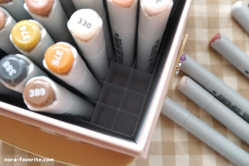 個人的なArrtxのマーカーセットの好きなポイントのひとつは、箱に仕切りが入っているところ!