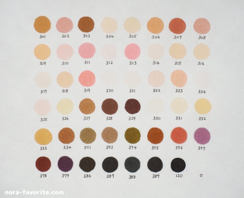 ただ、正直な感想、肉眼で見ても386番から389番の色味の違いがわかりづらかった…。