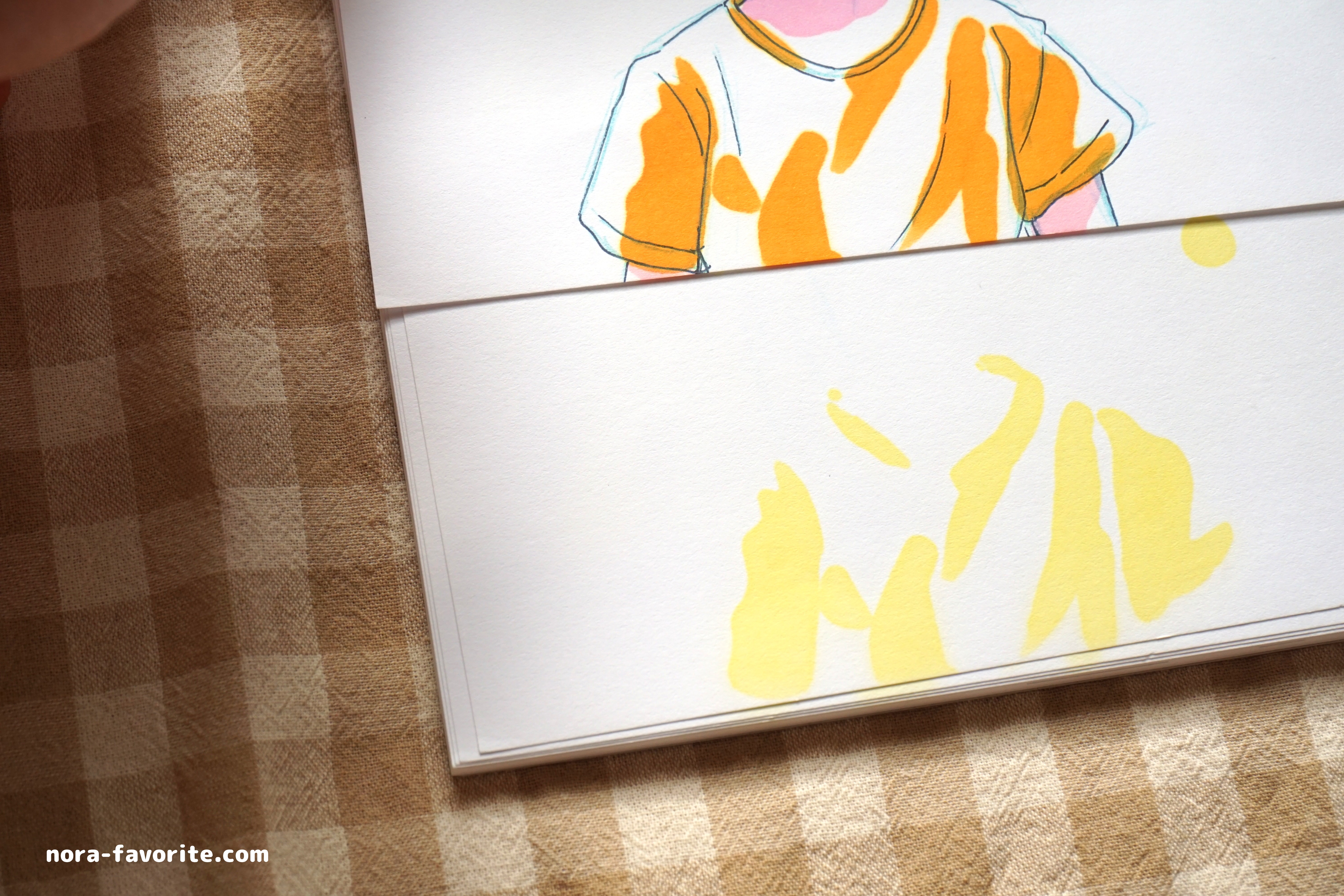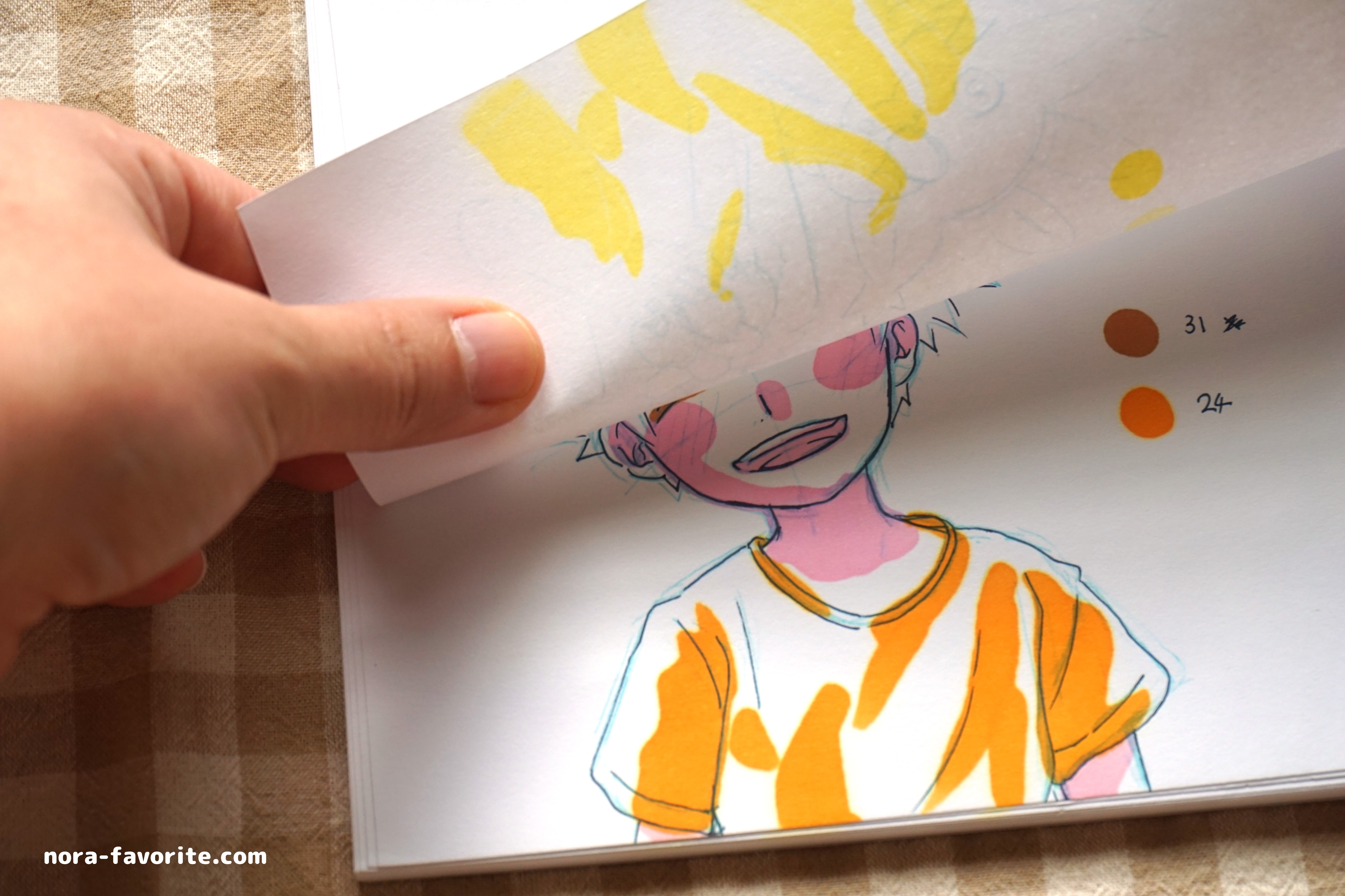 スケッチブックなど、比較的厚みがある紙に塗ったものはそこまで色移りはしていませんでしたが、