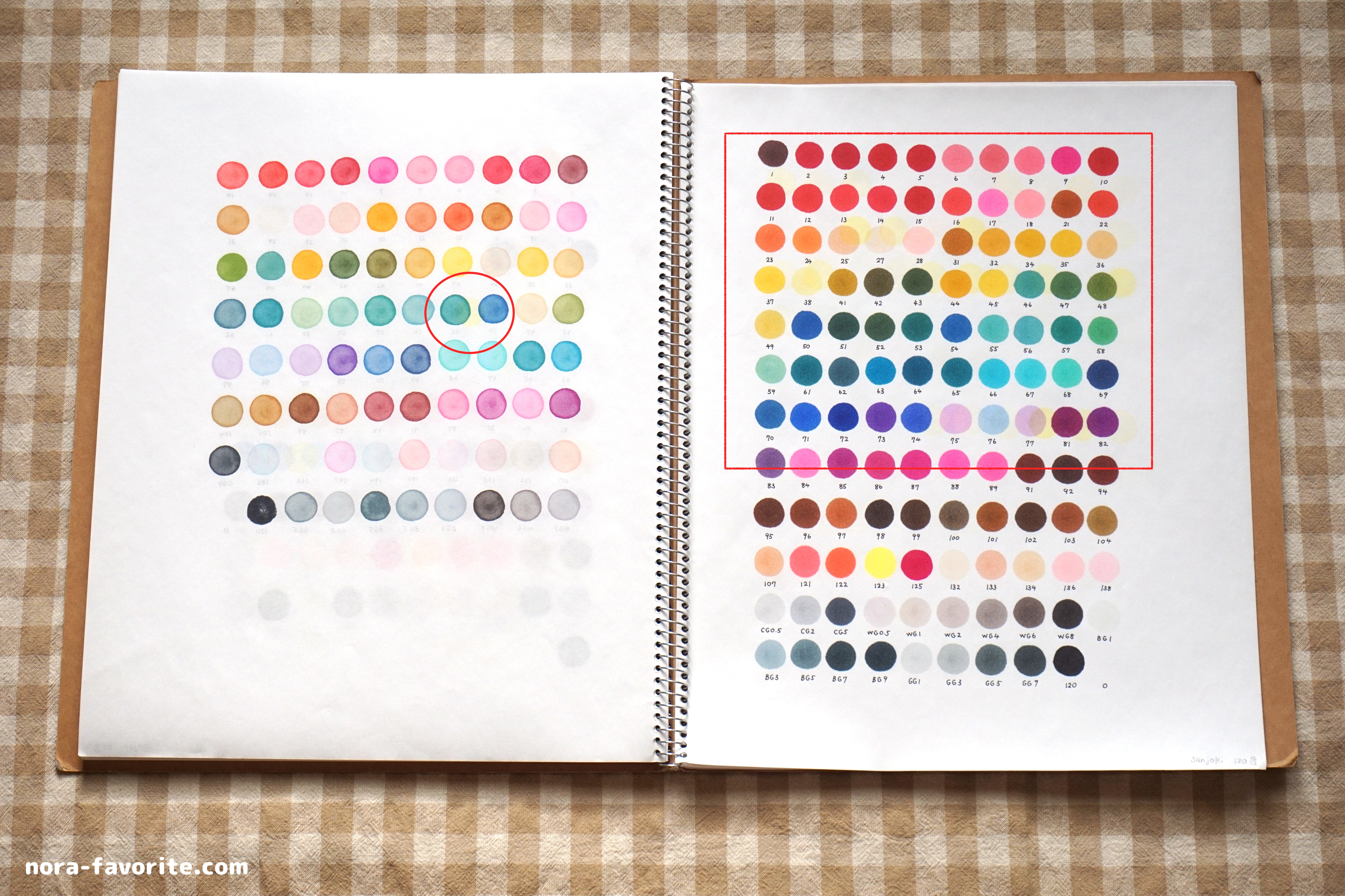「Arrtx の80色セットと90色セットを合わせた170色のうち、Sanjokiと同じ番号の色味が一緒ではないか…?」